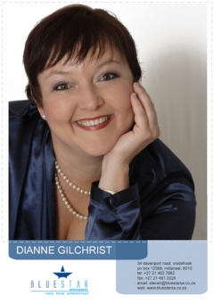 Dianne Gilchrist Casting Age: 35 to 40 Characteristics Name: Dianne Gilchrist Hair: Dark Brown Eye: Brown Height: 162 cmWeight: 80 kgWaist: 88 cmHips: 92 cmDress: 36 Bust: 36 B Shoe: 5 UK Languages: English